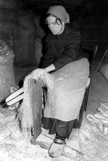 de hekel kamt de boerin het vlas.
